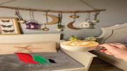 – تعليق حبال زينة رمضان التي تأخذ أشكال الخيمة الشهيرة بألوانها المبهجة المتعددة.