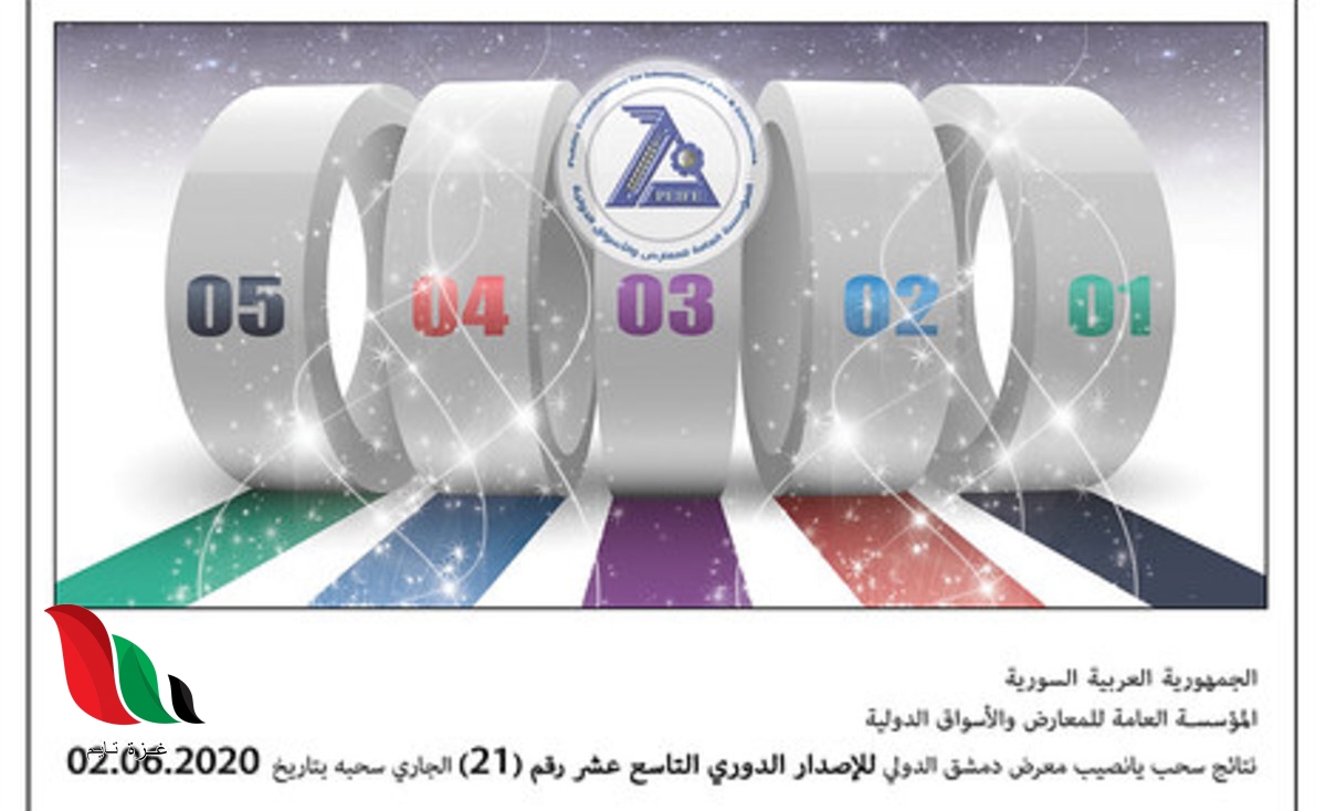 أرقام البطاقات الرابحة في سحب الإصدار الدوري التاسع عشر رقم (21) من معرض دمشق الدولي 2020